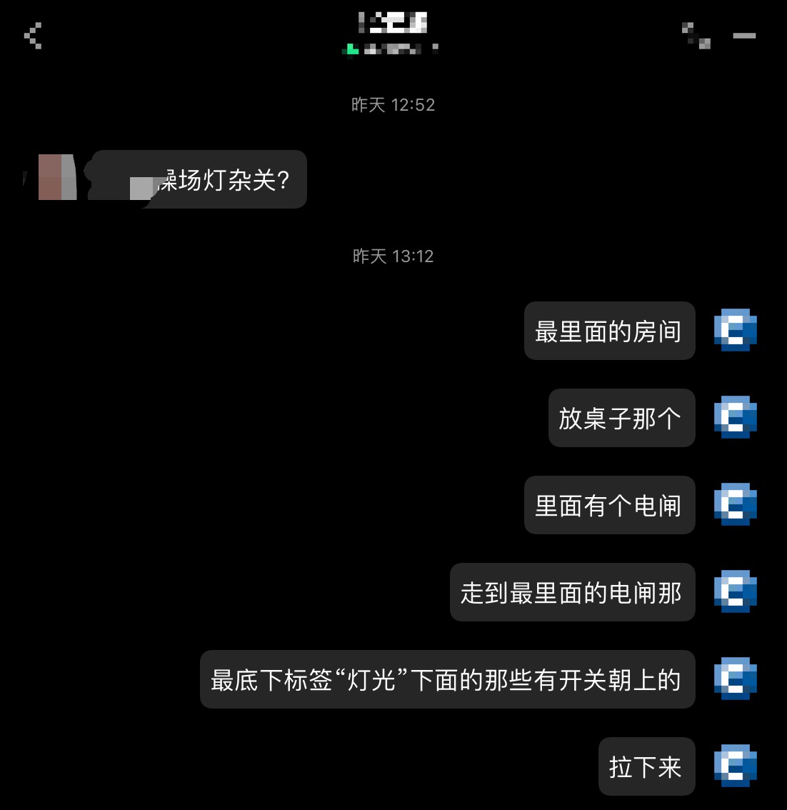 最里面的房间里摆满了桌椅,墙上挂着电闸。终于找到开关了()